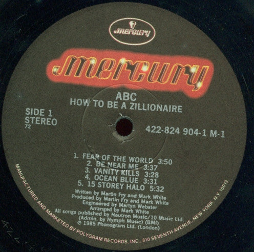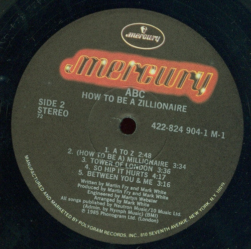 PRC Richmond pressing; '72' on the labels at the left; PRC etched in the runouts. Issued with custom inner sleeve. Runouts are etched with 'Mastered By Frankford/Wayne New York' stamped. Catalog number on inner labels: 422 824 904-1 M-1 Catalog number on spine: 824 904-1 M-1 Recorded at Jacobs Studios Surrey. Mixed at Sarm West Studios, London. 84 into 85 Mastered at Townhouse Studios, London. Copyright © 1985 Neutron Music/10 Music Ltd. All songs published Neutron Music/10 Music Ltd. (Admin. by Nymph Music (BMI) (On labels) Published in the U.S.A. and Canada by Nymph Music (BMI). Used by permission. (On sleeve) ℗ © 1985 Phonogram Ltd. (London) Manufactured and marketed by Polygram Records, Inc., 810 Seventh Avenue, New York. N.Y. 10019.