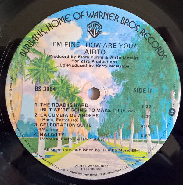 This is the Capitol Pressing Plant, Los Angeles pressing variant denoted by a small ✲ asterisk stamped in the runout areas. Photos and credits appear on the inner sleeve. ℗ 1977 Warner Bros. Records Inc. © 1977 Warner Bros. Records Inc. Recorded at Paramount Studios, Hollywood, July / August 1977. Mastered at Kendun Recorders, Burbank, August 1977. Made in U.S.A. / Printed in U.S.A. Produced for Zara Productions. Special thanks to Hermeto Pascoal for his collaboration on "The Happy People" and to Tom Scott for his collaboration on "The Road Is Hard But We're Going To Make It"