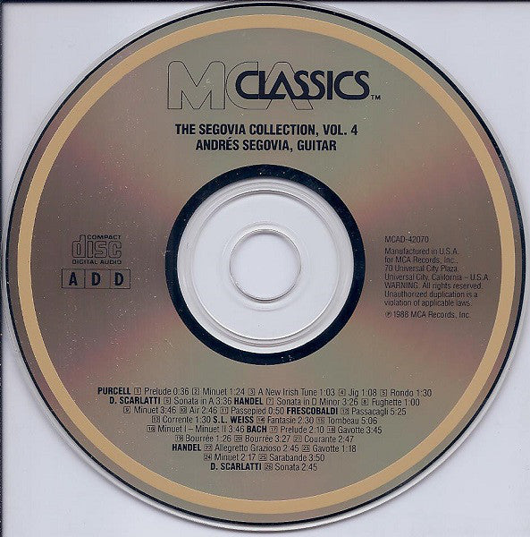 Andrés Segovia - Henry Purcell, Domenico Scarlatti, Georg Friedrich Händel, Girolamo Frescobaldi - The Segovia Collection, Vol. 4: The Baroque Guitar (CD, Comp, RM) (Near Mint (NM or M-))