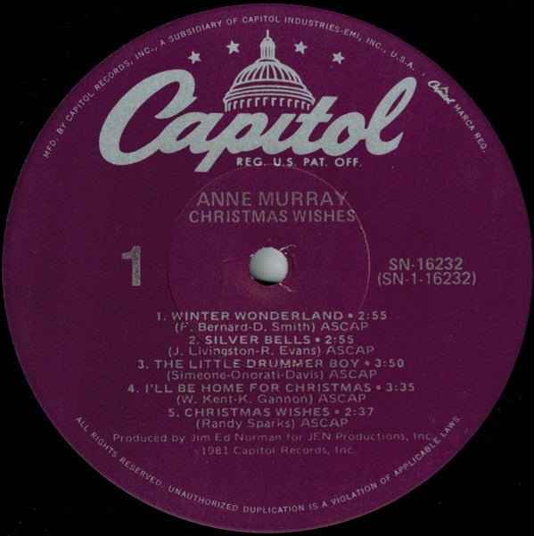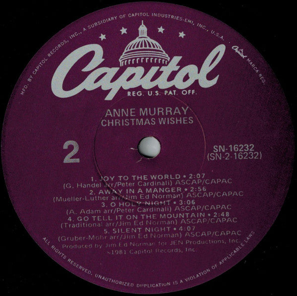 This version has purple labels (other versions exist with green or blue labels). “0” etched/stamped in runouts denotes a Capitol Records Pressing Plant, Jacksonville, IL pressing.