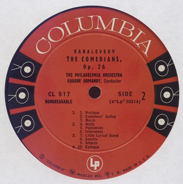 Label rim text and printed on cover: "® "Columbia", "360". (Lp) Marcas Reg. T.M. Printed in U.S.A." Recorded April 8th, 1956 in The Academy of Music, Philadelphia, PA. Both recordings have never been re-issued, CL-917 is their only release.