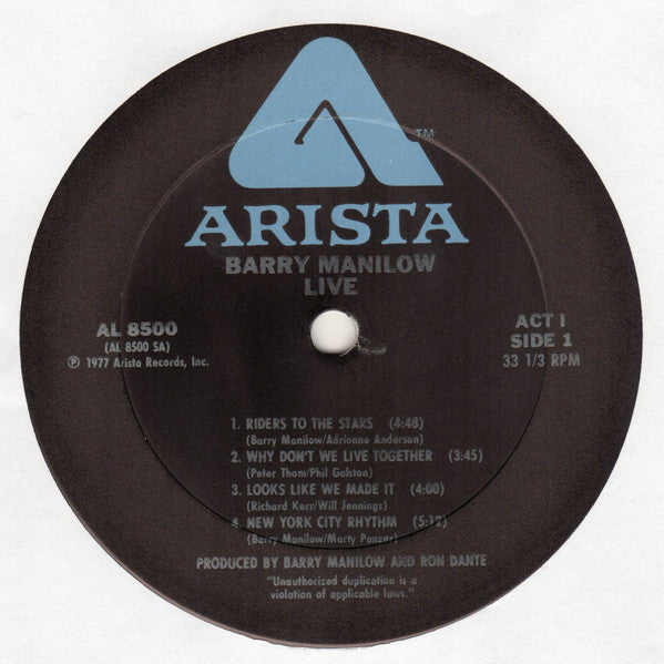 "CTH" in runouts denotes a [l403953 pressing. "CRC" in red ink at bottom of spine is the only indicator that this is a Columbia House club edition. Recorded at The Uris Theatre, New York City, except V.S.M. recorded at Ravinia Festival, Chicago. Mixed at Media Sound Studios, New York City. ℗&© 1977 Arista Records, Inc. Printed in U.S.A. This version has track B1 is listed as "Very Strange Medley" on the Jacket/sleeve and as "Very Strange Medley" on the record. Other versions have track B1 is listed as "Very Strange Medley" on the Jacket/sleeve but as "Very Special Medley" on the record. Track length for D5 and D6 is 6:52 together. Cat# Spine: ARISTA 8500 1198 on the bottom of the spine. Cat# Label: AL 8500 This is an auto-coupled release, Record 1 contains Side A and Side D, Record 2 contains Side B and Side C.