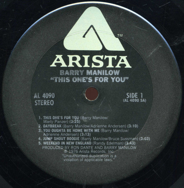 Recorded and mixed at Mediasound N.Y.C. ℗ & © 1976 Arista Records Inc. Printed in U.S.A. Another credit for Background Vocals: "...and the lady in the middle with the very strange name". Some copies may have a "CRC" sticker on the back cover.