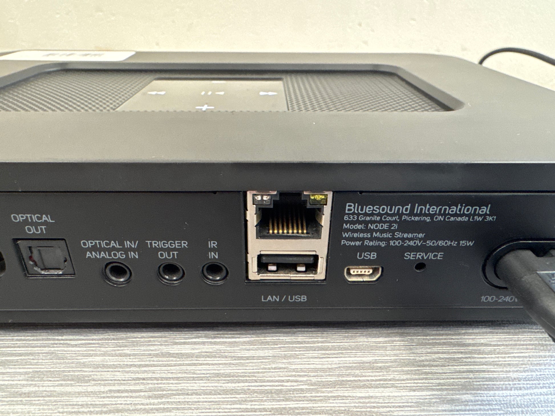 The NODE uses dual-band Wi-Fi to ensure a stable connection to your router and other Bluesound components. You can also make a wired Gigabit Ethernet connection.