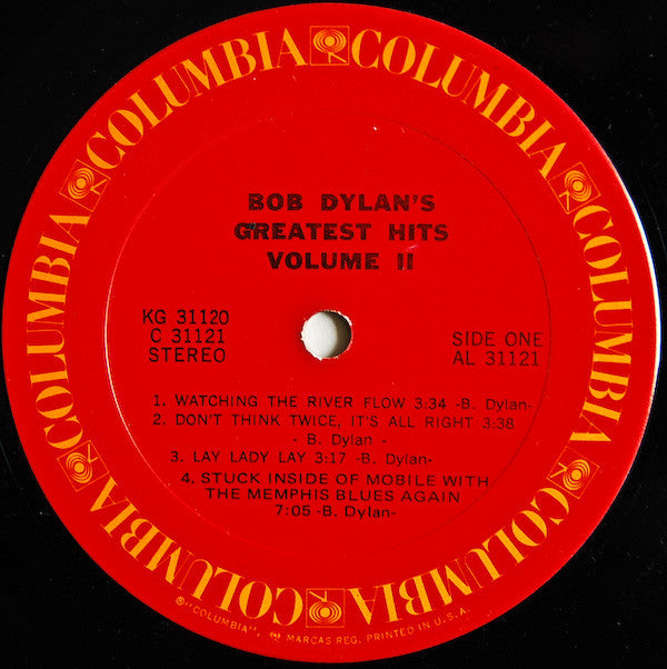 Also has a variation in which RECORD 1 appears on right side of label under the label code underneath SIDE ONE. © Copyright 1971 Bob Dylan / Manufactured by Columbia Records, CBS, Inc./ 51 W. 52 Street, New York, N.Y. Printed in U.S.A.