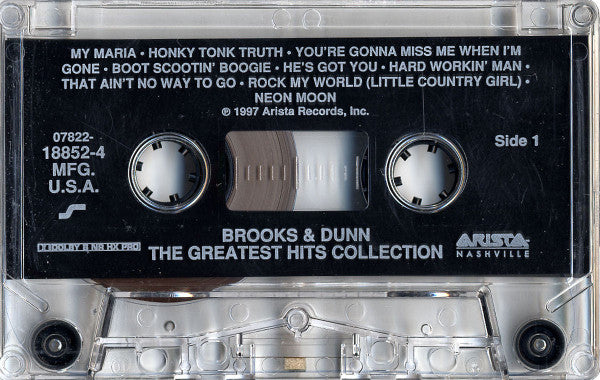 No text on cassette labels under Side # ℗ & © 1997 Arista Records, Inc., a unit of BMG Entertainment Printed in U.S.A. Mfg U.S.A. (labels) Clear cassette shell with a smooth finish, a ' | ׀ ׀ ׀ ׀ | ׀ ׀ ׀ ׀ | ' tape scale, white direct-to-shell labels & fused assembly. The J-card, including 7 foldout panels, has printing on both sides.