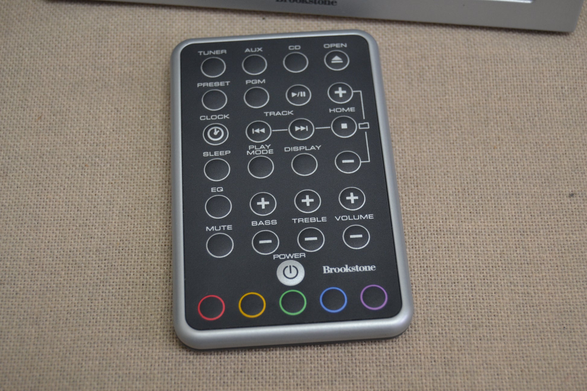 I found the backlight colors to be a fun touch to the system and we even used them to drill our 22-month-old on his colors! The Brookstone designed and developed remote control in general feels like a Cadillac in your hand and the buttons are well laid out for a system of this type. I have no complaints or suggestions - and that's saying a lot.