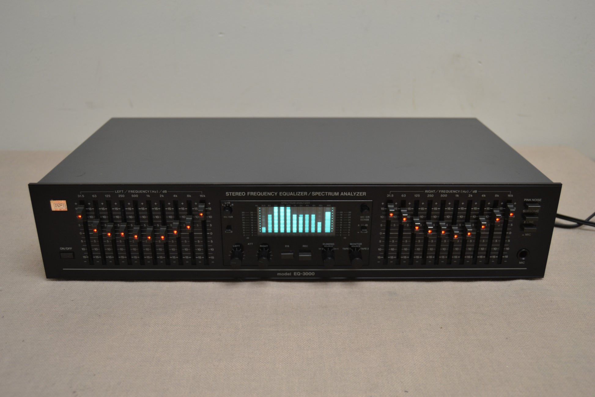 A wide variety of factors, including the nature of the listening environment as well as the placement of speakers, play a major role in the acoustic quality of any music system. To further enhance the effectiveness of the audio equalizer, BSR has developed the ultimate component in audio - measuring equipment: the new EQ-3000, the graphic equalizer with a real time frequency spectrum analyser.
