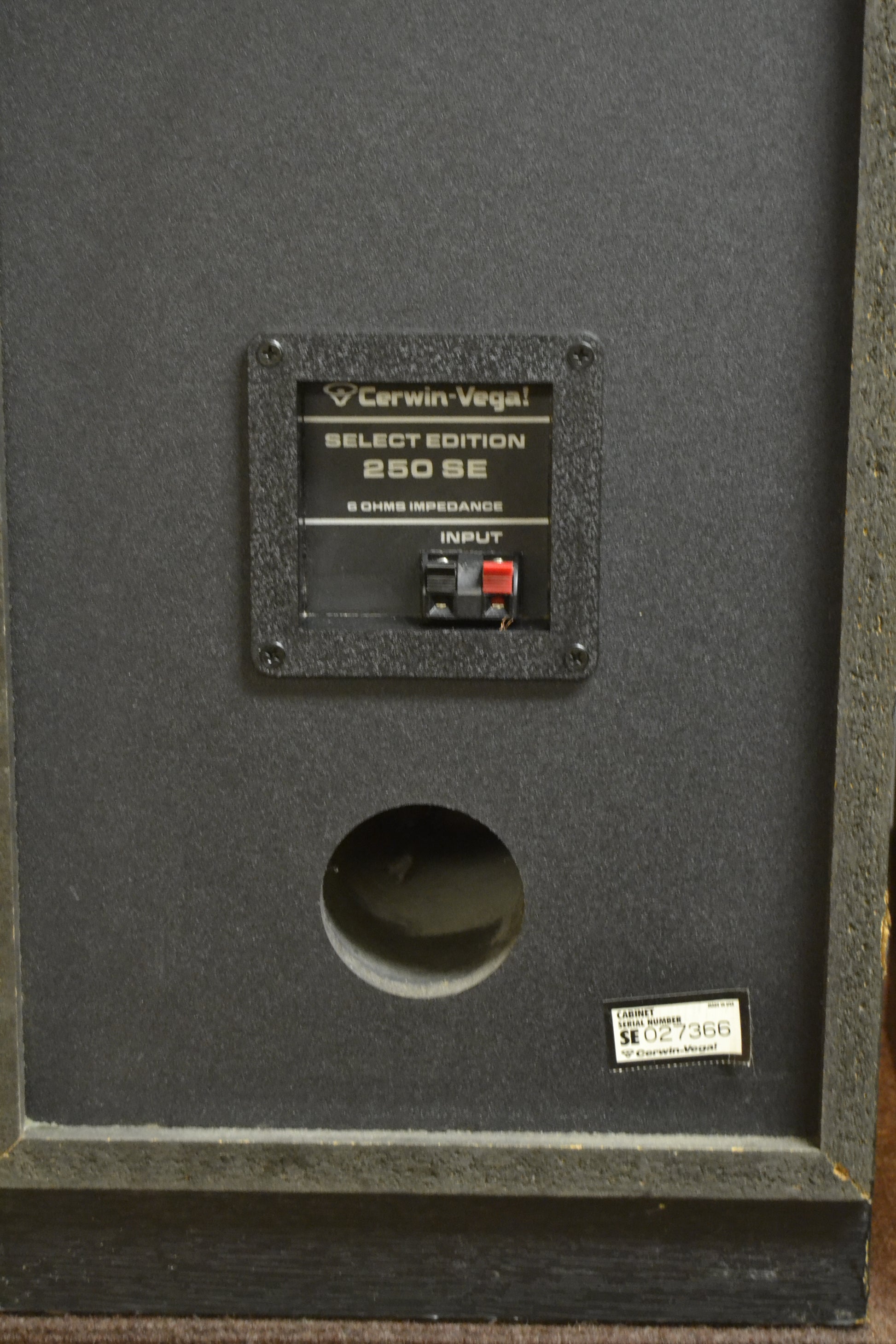 Because of the variable midrange and treble response adjustments, it is difficult to describe the frequency response of the Cerwin-Vega 250SE. Within wide limits, it can have almost any response you wish it to have if you have the patience to experiment with the control settings. Although our test settings yielded the flattest measured response, the resulting sound was too subdued for our taste, and we eventually increased the treble control to its midpoint and the midrange to its maximum. To our ears the sound was much improved, but obviously each user will have to establish his own preferred settings.
