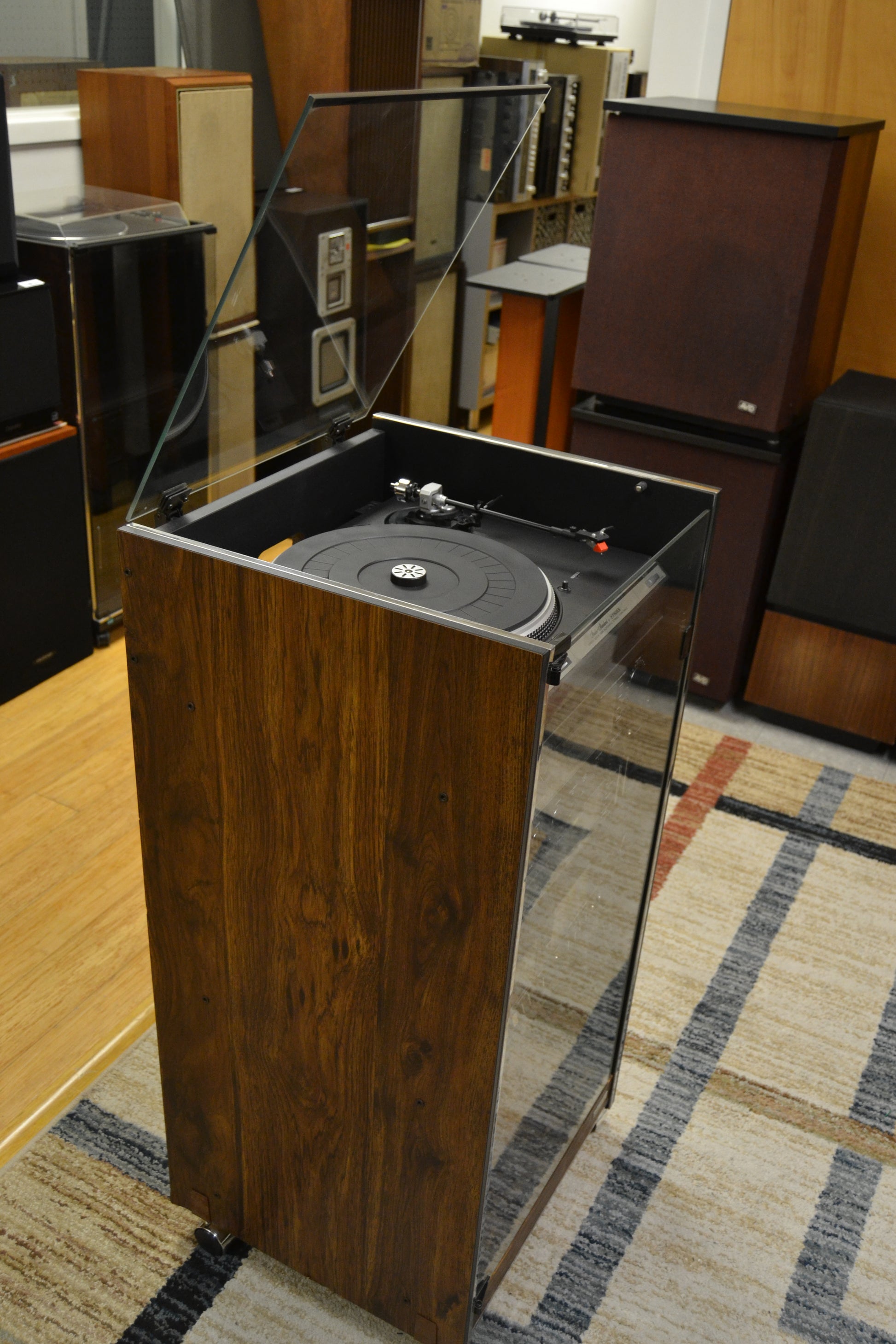 Refinishing the walnut cabinet can transform a unit. We do use real wood oil or Danish oil, not polyurethane. We clean the glass dial carefully; those silkscreened letters are fragile.