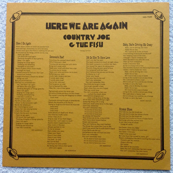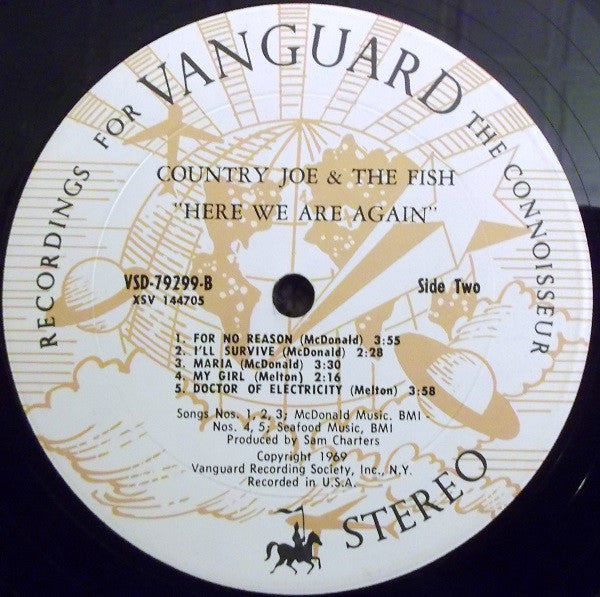Recorded and re-mixed by Ed Friedner at Vanguard's 23rd Street Studio, New York, and Pacific High Studios, San Francisco. Lyric Insert. This version comes with white center labels picturing a brown illustration of celestial bodies and black type.