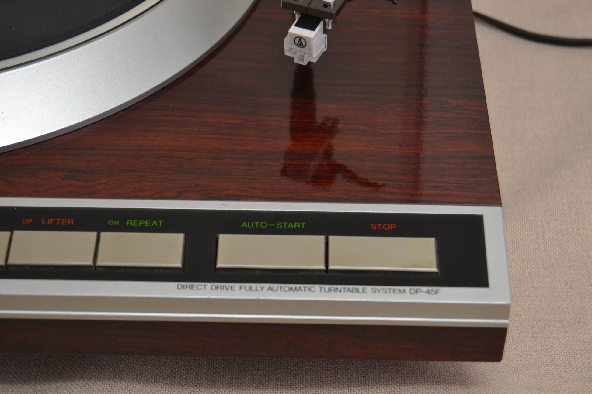 Refinishing the walnut cabinet can transform a unit. We do use real wood oil or Danish oil, not polyurethane. We clean the glass dial carefully; those silkscreened letters are fragile.