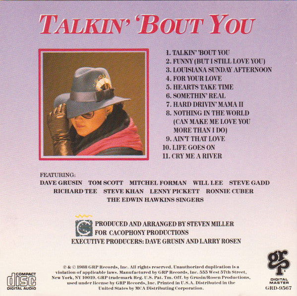 Recorded at Right Track Recording, NYC, Manhattan Recording Company, NYC, London Bridge Studios, Seattle, WA, Sorcerer Sound, NYC, Ocean Way Recording, Hollywood, Fantasy Studios, Berkeley, CA, Monterey Recording, Glendale, CA and RPM Sound, NYC Mixed at RPM Sound, NYC Tracks 1, 4, 9 and 10 mixed at The Review Room ℗ & © 1988 GRP Records, Inc. Tracks 1, 2, 9 published by Rightsong Music, Inc./BMI Track 3 published by Rightong Music, Inc., Franne Golde Music, Inc., ATV Music Corp./BMI Track 4 published by Beechwood Music/BMI Track 5 published by Irving Music, Inc. & Eaglewood Music/BMI and MCA Music Publishing & Tao Songs/ASCAP Track 6 published by Skyforest Music, Inc./BMI Track 7 published by A.H. Music/ASCAP & In Your Face Music/BMI Track 8 published by Iza Music, Eden Music, ATV Music (Sweco), Trio Music & Alley Music/BMI Track 10 published by Deedles Music and Ferry Boat Music/ASCAP Track 11 published by Chappell & Co./ASCAP [a258118 appears courtesy of [l37615