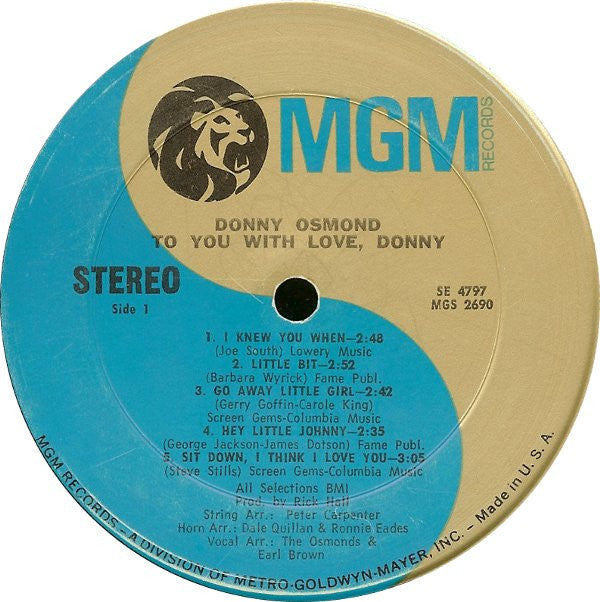 Recorded at Fame Recording Studios, Muscle Shoals, strings recorded at Independent Recorders, Studio City, and vocals recorded at MGM Recording Studios. Cat # SE 4797 appears on the label. Cat # SE-4797 appears on the spine, front and rear covers, top-right.