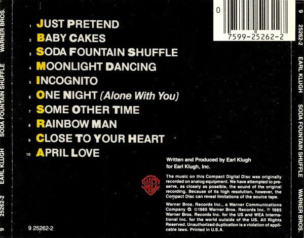 Specialty 'S' logo appears in matrix, along with no SID codes, indicating release date of between 1993 and 1994. For earlier SRC pressing without logo, see [r23639231. Printed in U.S.A. on tray insert Printed in U.S.A. on booklet page 3. MADE IN USA on CD Written and produced for Earl Klugh, Inc.
