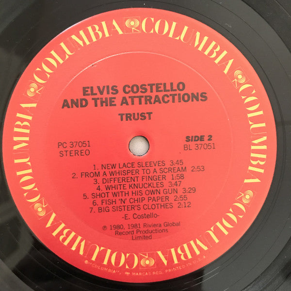 Side A has both an etched "S1" and a stamped "P", which means the laquer was cut at [l376197, but was pressed at [l447694. Issued without a custom inner-sleeve. Recorded in Great Britain At DJM Studios / Eden Studios * (B7) Nick Lowe not to blame for this one © 1981 F-Beat Records Ltd./℗ 1980, 1981 Riviera Global Record Productions Limited Manufactured by Columbia Records/CBS Inc./N.Y., N.Y.