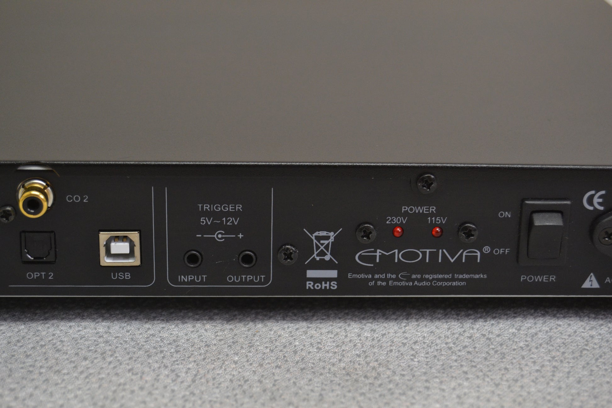 I felt that the remote was a bit over built and clunky, however, it was more impressive than a cheap plastic remote and certainly better than no remote at all! The remote is made from a chunk of billet aluminum and had some heft to it. It reminded me of the game of Clue: “I think it was Col. Mustard, in the library and he used the XDA-1 remote.” Yes, it is that hefty. The XDA-1’s 17 inch width is sized right for a rack mount, but is small enough and light enough to move from your main stereo system to your desk top computer. You could easily set an IPod transport on top of it (I’m thinking Wadia, myself) and pair it with a small amp and have a killer system somewhere else in the house (my wife is thinking kitchen). Come to think of it, a laptop would sit nicely on top of this as well. As you can see from the pictures, it easily fits in with the style of the other Emotiva gear.