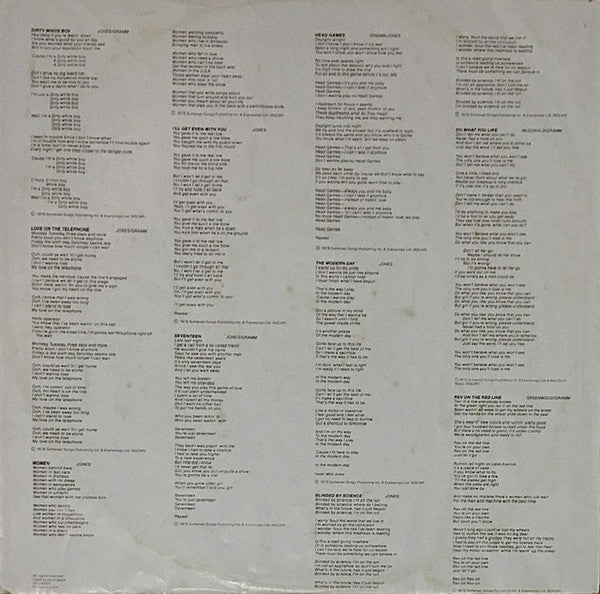 All songs published by Somerset Songs Publishing Inc. & Evansongs Ltd. (ASCAP) except "Do What You Like" published by Somerset Songs Publishing Inc, Evansongs Ltd. & Mud Drum Music (ASCAP) This is a [l130920 pressing with -PR label matrix suffixes.