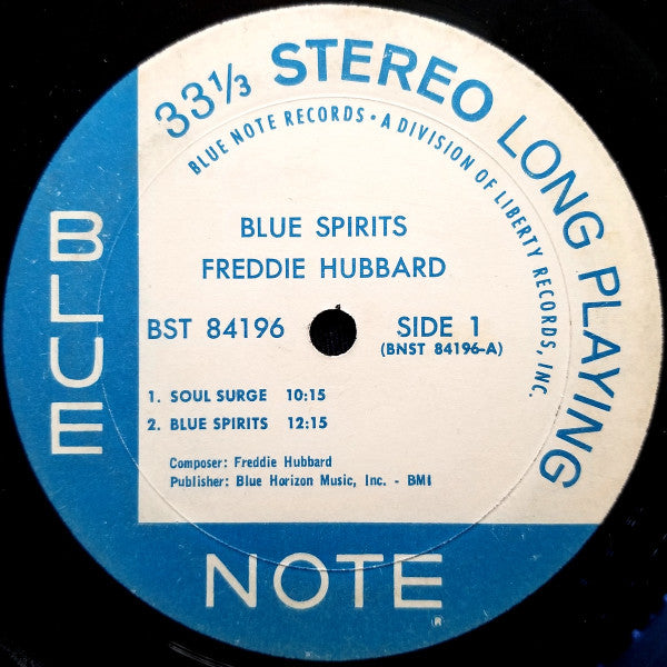 West Coast Liberty pressing; artist and album title are the same size font on labels. Labels: "Blue Note Records Inc • A Division of Liberty Records, Inc". Back cover: "43 West 61st St., New York 23". Recorded on February 19, 1965 (tracks A1, B2) and on February 26, 1965 (tracks A2, B1, B3). McCoy Tyner performs by courtesy of Impulse Records.