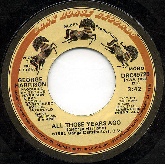 Promo copy with mono & stereo versions. ®Loka Productions S.A., ℗1981 Ganga Distributors, B.V. From the Dark Horse Album DHK 3492 Somewhere In England.
