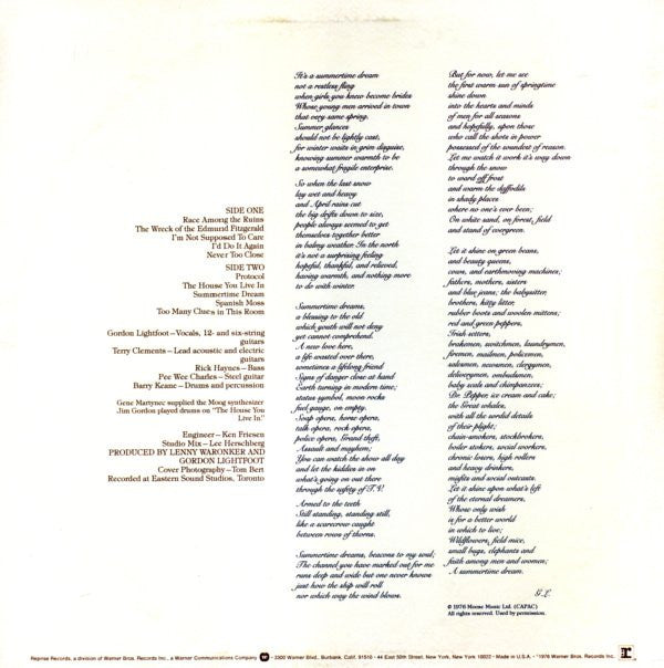 Gordon Lightfoot - Summertime Dream (LP, Album, Win) (Very Good Plus (VG+))