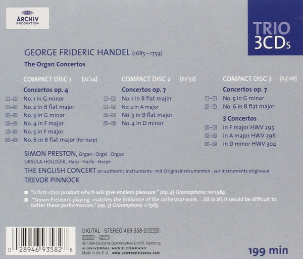 ℗ 1984 Deutsche Grammophon GmbH, Hamburg Made in the E.U. Recording: Finchcocks, nr. Goudhurst, Kent (England), Finchcocks Museum of Music, 10/1982 (HMV 289-293,296); London, Henry Wood Hall, 4/1983 (HMV 294); Armitage, nr. Rugeley, Staffordshire (England), Church of St. John the Baptist, 6 & 9/1983 (HMV 295, 304, 306-311). 199 min
