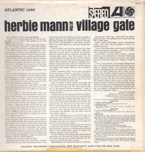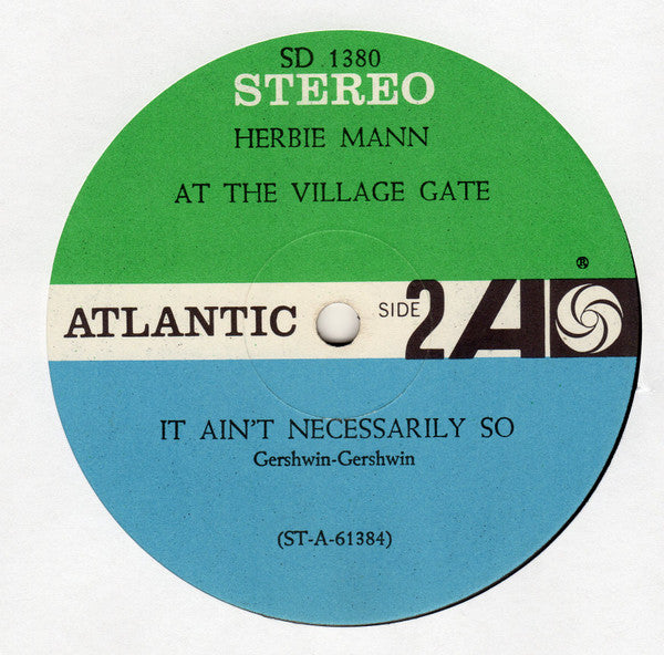 This is for the MGM Record Manufacturing pressing as derived from the Block-shaped "S" stamp in the matrix of both sides. The "12" and "5" matrix number stampings appear close to the labels above the initial etching string. The labels are blue/green with an unboxed Atlantic Logo. 1380 catalog number appears on the front, back and spine of cover, SD 1380 appears on labels.