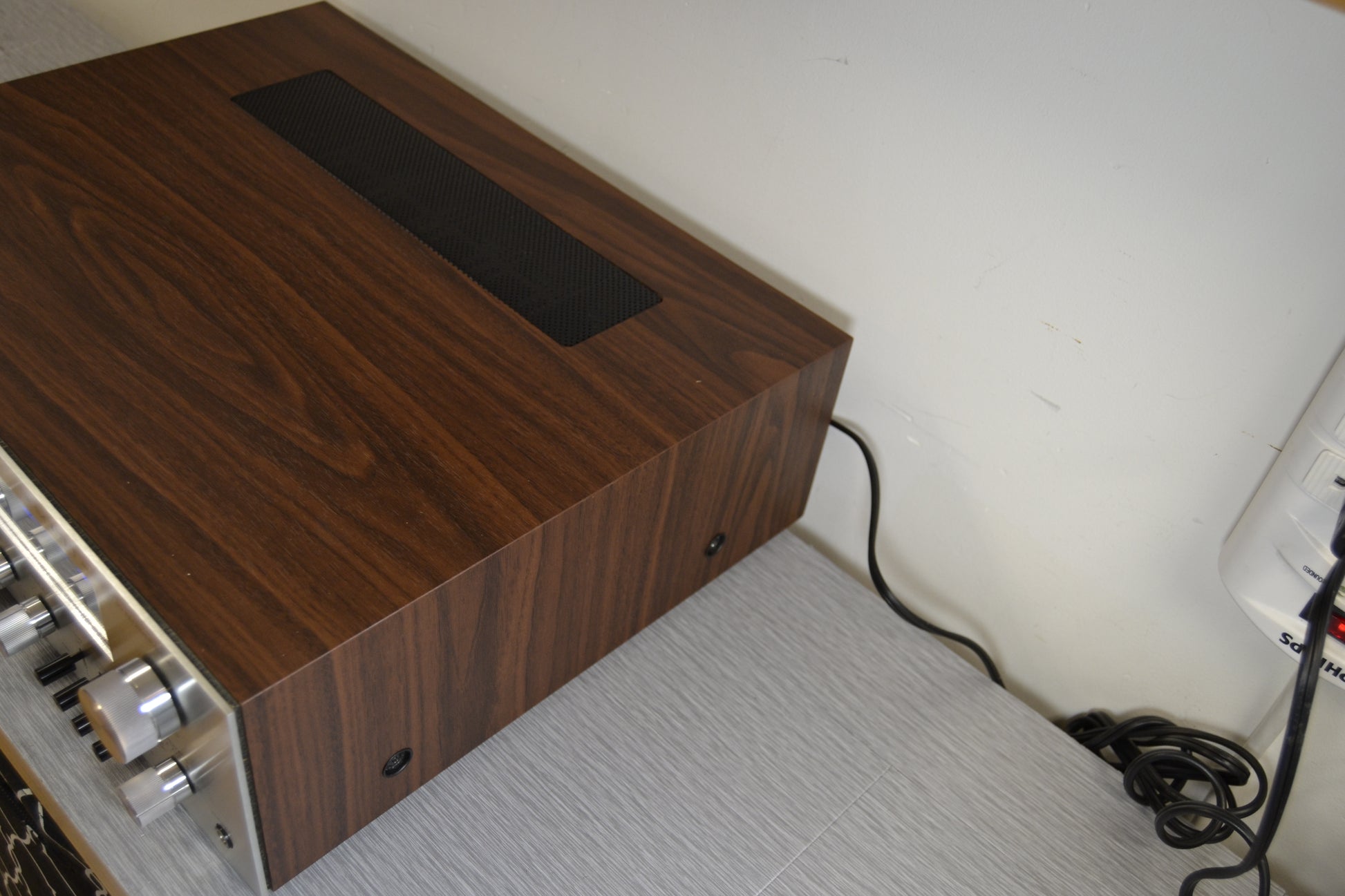 Refinishing the walnut cabinet can transform a unit. We do use real wood oil or Danish oil, not polyurethane. We clean the glass dial carefully; those silkscreened letters are fragile.
