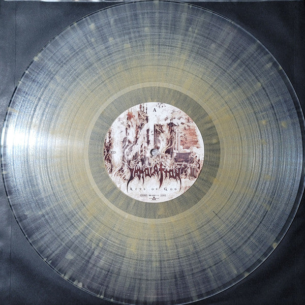Gatefold double LP, Crystal Clear with Gold splatter vinyl housed in black poly-lined inner sleeves. Comes with a 24"x12" fold-over insert/lyrics sheet. Tracks are listed sequentially with Roman numerals on the back cover and broken up by side. Track durations are not listed anywhere on this version. Limited to 1800 copies. Dan Lilker's vocal credit on 'Let The Darkness In' appears in the inner gatefold.