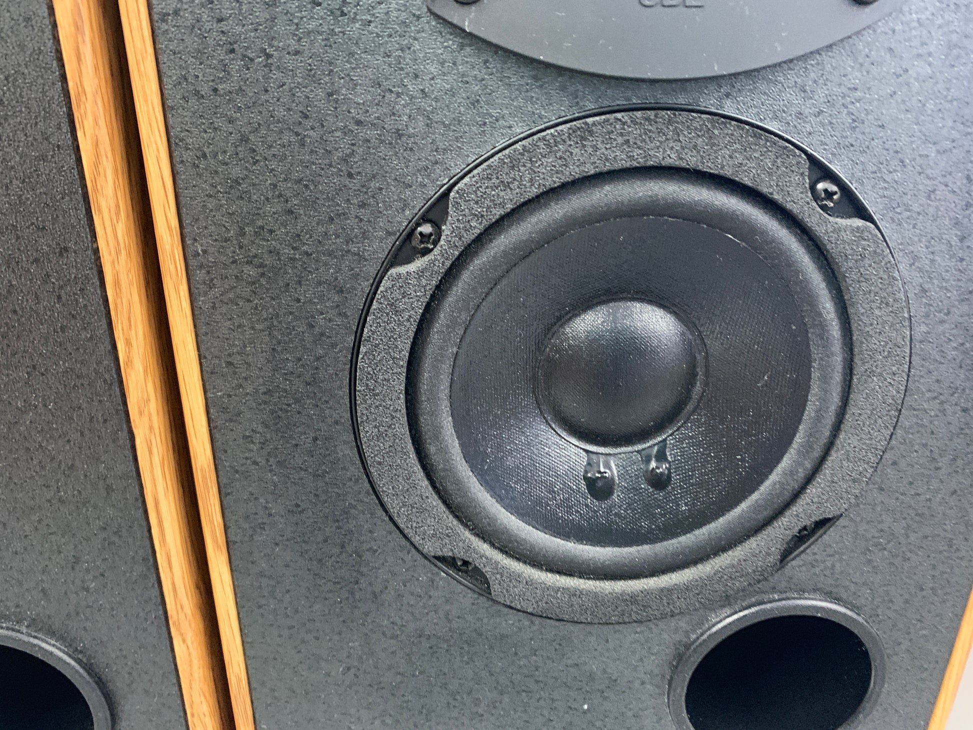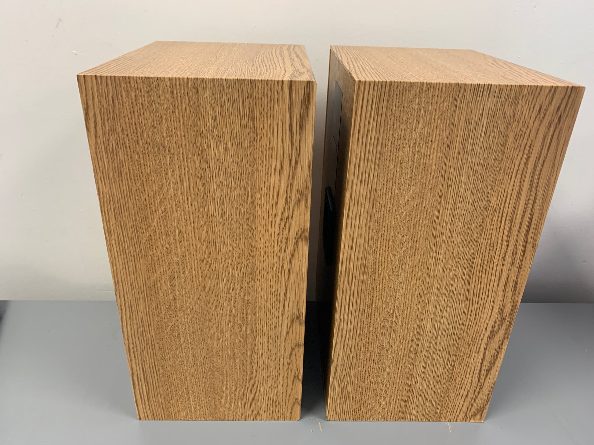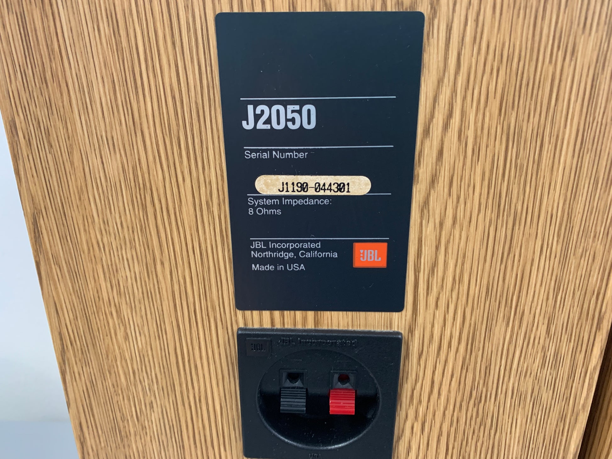 The JBL J2050 are compact, two-way bookshelf speakers that have 80 watts at 8 ohms. They have a 5.25 inch woofer and a 1/2 inch titanium dome tweeter. The oak cabinets measure 12.25 inches high, 8 inches wide, and 6.5 inches deep.