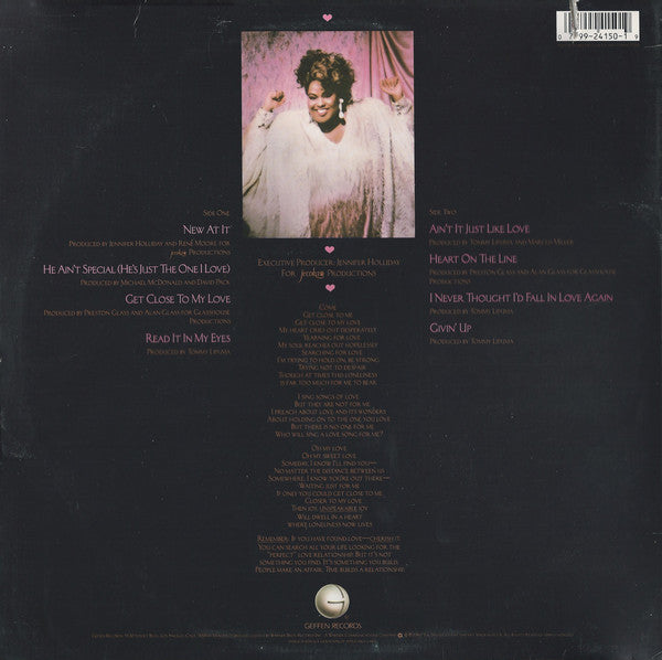 Kenny G appears courtesy of Arista Records Ernie Watts appears courtesy of Qwest Records Michael McDonald appears courtesy of Warner Bros. Records, Inc. René Moore appears courtesy of Polygram Records David Pack appears courtesy of Warner Bros. Records, Inc. Robbie Buchanan for Robbie Buchanan, Inc. Executively produced for Jecoka Produsctions, Inc. A1 Produced for Jecoka Produsctions, Inc. A3, B2 Produced for Glasshouse Productions A1 Recorded at Sunset Sound The Bunny-Hop Image Recording Studios Mixed at Sunset Recording Studios, Hollywood, California A2 Recorded at Dilling Studios, Los Angeles, California Ocean Way Recording Studios, Los Angeles, California Mixed at Ocean Way Recording Studios, Los Angeles, California A3, B2 Recorded and mixed at The Plant Recording Studios, Sausalito, California A4, Recorded and mixed at Bill Schnee Recording Studios, North Hollywood, California B1 Recorded at RPM Recording Studios, New York, New York Mixed at Sound Works Recording Studios, New York, New York B3 Recorded and mixed at Bill Schnee Recording Studios, North Hollywood, California Additional recording at Clinton Recording Studios, New York, New York B4 Recorded at The Power Station, New York, New York Mixeed at Bill Schnee Recording Studios, North Hollywood, California Additional Recording at Sunset Sound, Hollywoo, California Clinton Recording Studios, New York, New York Published by A1 © 1986 Nick-O-Val Music ASCAP A2 © 1986 Art Street Music BMI / Genevieve Music ASCAP A3, B2 © 1986 Glasshouse Music / Irving Music / Ensign Music Company BMI A4 © 1985 Snow Music / Pitchford Music BMI B1 © 1985 Yellow Brick Road Music ASCAP / Music Corporation Of America BMI B3 © 1987 Rebec Music ASCAP B4 © 1971 Jobette - Little People BMI ℗ © 1987 The David Geffen Company Manufactured exclusively by Warner Bros. Records Inc. A Warner Communications company. Made in U.S.A. Includes a printed inner sleeve with lyrics and credits.