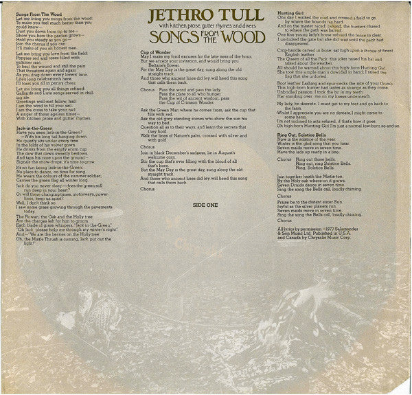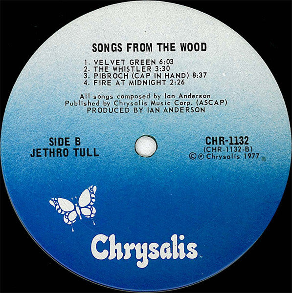 ℗© Chrysalis 1977 Original Pitman Pressing Label Variation: 1. No margins between Anderson credits under tracks 2. Side markings A/B, rather than 1/2 3. Catalog number includes dash 4. ℗© credit on one line rather than two, under label matrix 1st Catalog number: spine; 2nd: rear sleeve; 3rd: label
