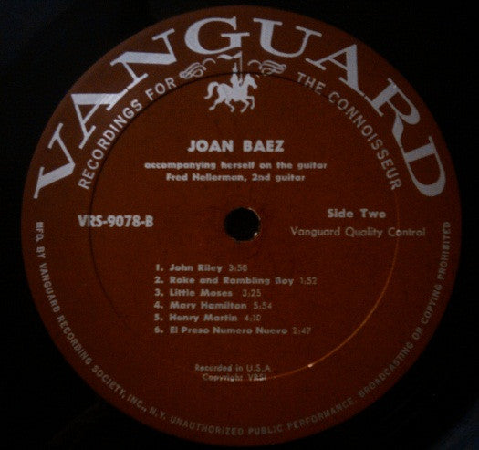 First Pressing Recorded Manhattan Towers Hotel Ballroom, New York, July 1960. Track A3 listed as "Fare Thee Well" on cover; as "Ten Thousand Miles" on label. Track B6 listed as "El Preso Numero Nueve" on cover (correct); listed as "El Preso Numero Nuevo" on label (incorrect); means "The Ninth Prisoner" Copyright VRSI