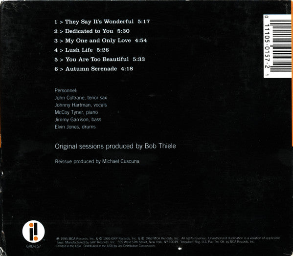 Trifold digipak with booklet. Digitally Remastered by Erick Labson at MCA Music Media Studios, using 20-Bit Super Mapping.. (P) 1995 MCA Records, Inc. © 1995 GRP Records, Inc. © 1963 MCA Records, Inc. Originally Released in 1963 on Impulse! with Cat#: "A-40" & "AS-40".