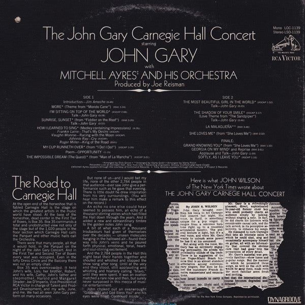 Including a text and picture story of John's career, "The Road To Carnegie Hall."
