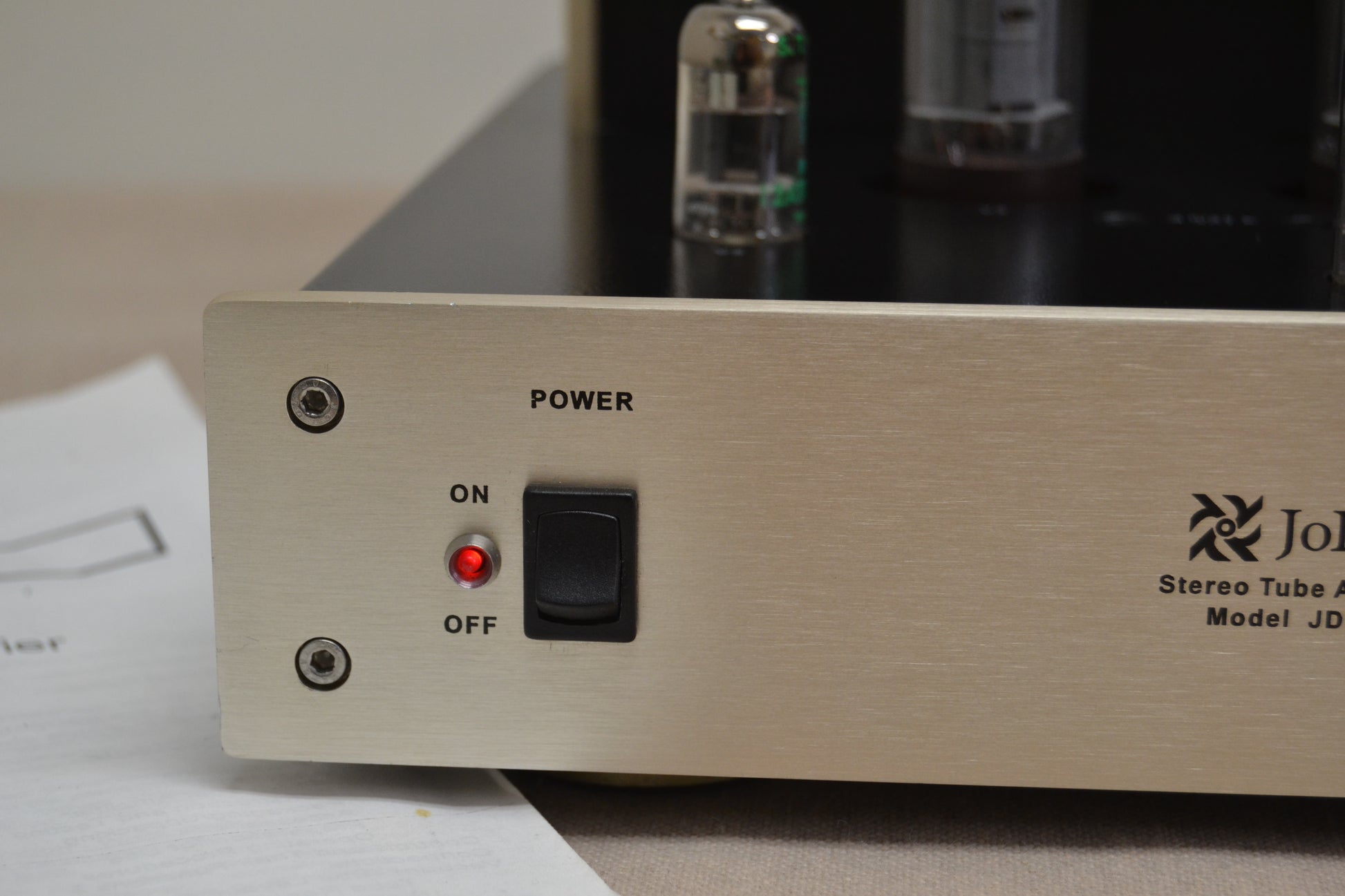 The JD-302B is a very well built unit, weighing in at approximately 39 pounds. Sprouting from its matte black top panel are pair of 12AX7 preamp tubes, a pair of 12AT7 driver tubes, and a quartet of EL34 output tubes. All of the tubes are of Chinese manufacture.