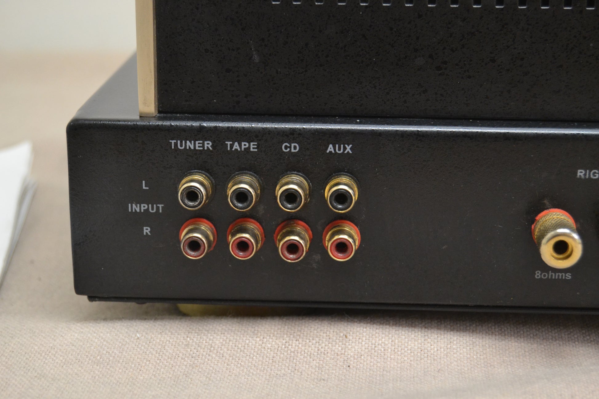 The power cord plugs into an IEC jack, should one decide to experiment with different types of power cord, and the 5 way gold plated binding posts are quite sturdy.