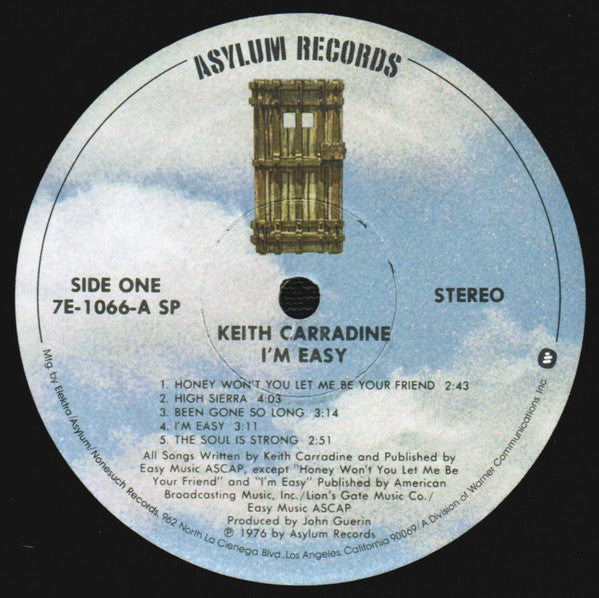 Label variation see photos ℗&© Elektra/Asylum/Nonesuch Records, Los Angeles, California A Division of Warner Communications Inc. Mfg. by Elektra/Asylum/Nonesuch Records, Los Angeles, California/A Division of Warner Communications Inc. All songs recorded at Devonshire Sound Studios, North Hollywood. Tracks A1, B3, B4, B5: Recorded at Elektra Sound Recorders, Los Angeles. All songs mixed at Devonshire Sound Studios except B3 and B2 mixed at A&M Studios. All Songs Copyright © 1976 Easy Music, ASCAP except "I'm Easy" and "Honey Won't You Let Me Be Your Friend" Copyright © 1975 American Broadcasting Music, Inc. / Lion's Gate Co. / Easy Music, ASCAP Contains insert with lyrics