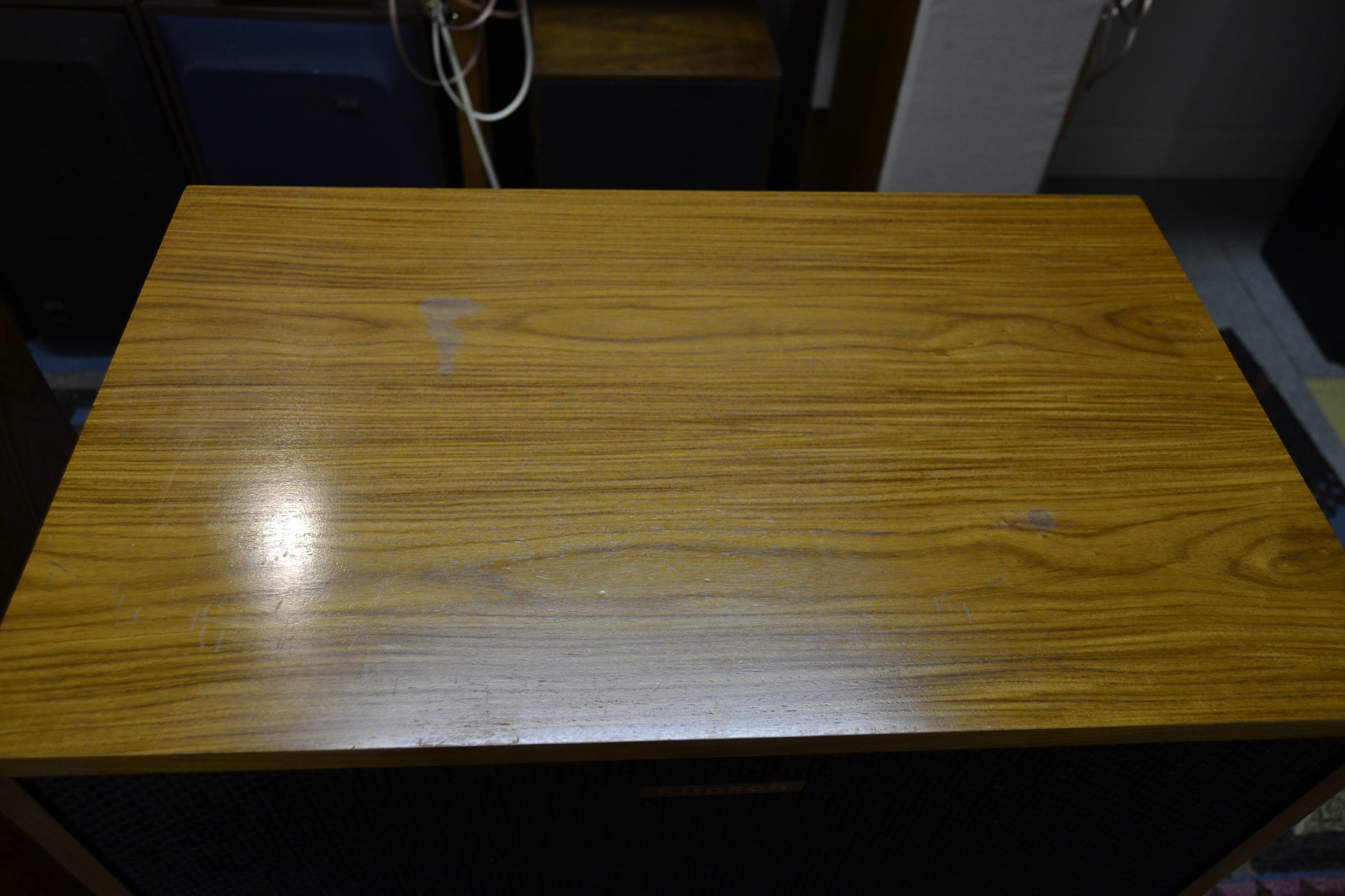 Refinishing the walnut cabinet can transform a unit. We do use real wood oil or Danish oil, not polyurethane. We clean the glass dial carefully; those silkscreened letters are fragile.