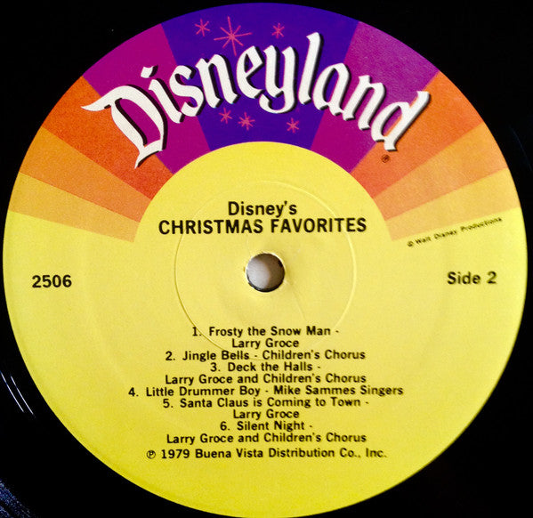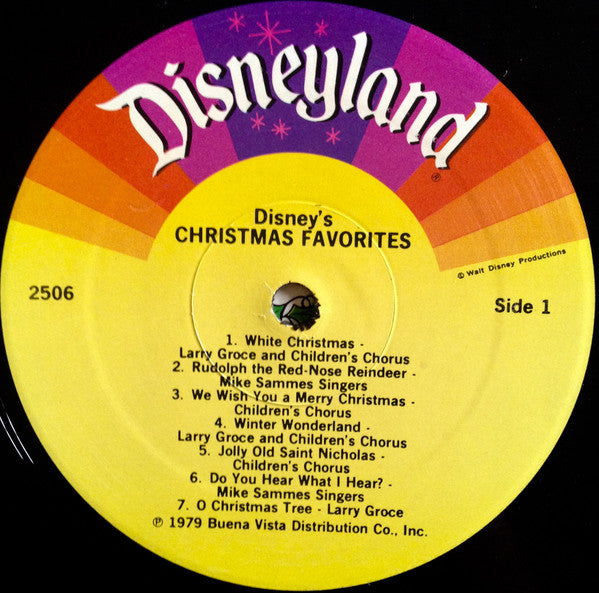 Rainbow center labels. Variant 1. Copyright statement on label is one line. On [r10505647 is two. Disneyland Records (logo) Disneyland/Vista Records ©MCMLXXIX Walt Disney Productions ℗MCMLXXIX Buena Vista Distribution Co., Inc. Printed in U.S.A.