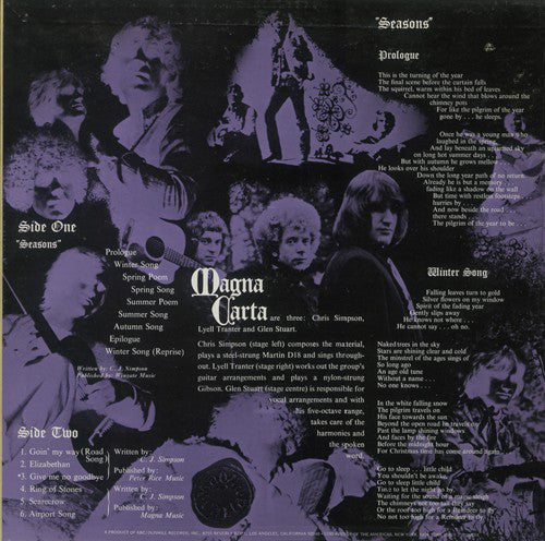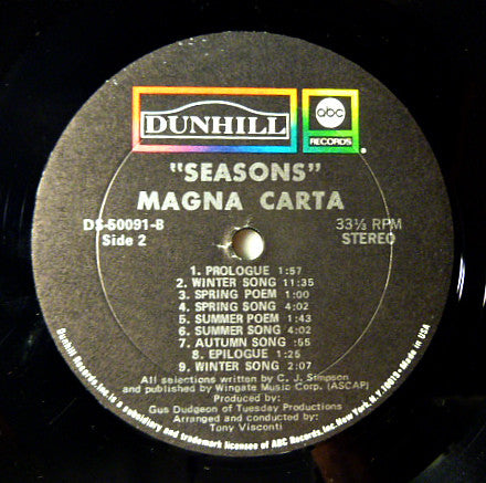 Recorded at Trident Studios London, and (B3) Morgan Studios London. On label, side one is incorrectly labeled as side 2, and vice-versa. Inside gatefold sleeve is the correct order (I.E 'Seasons' is side 1, and the rest is side 2). On frontsleeve (top right): Imported from Britain Vertigo Recirds, London