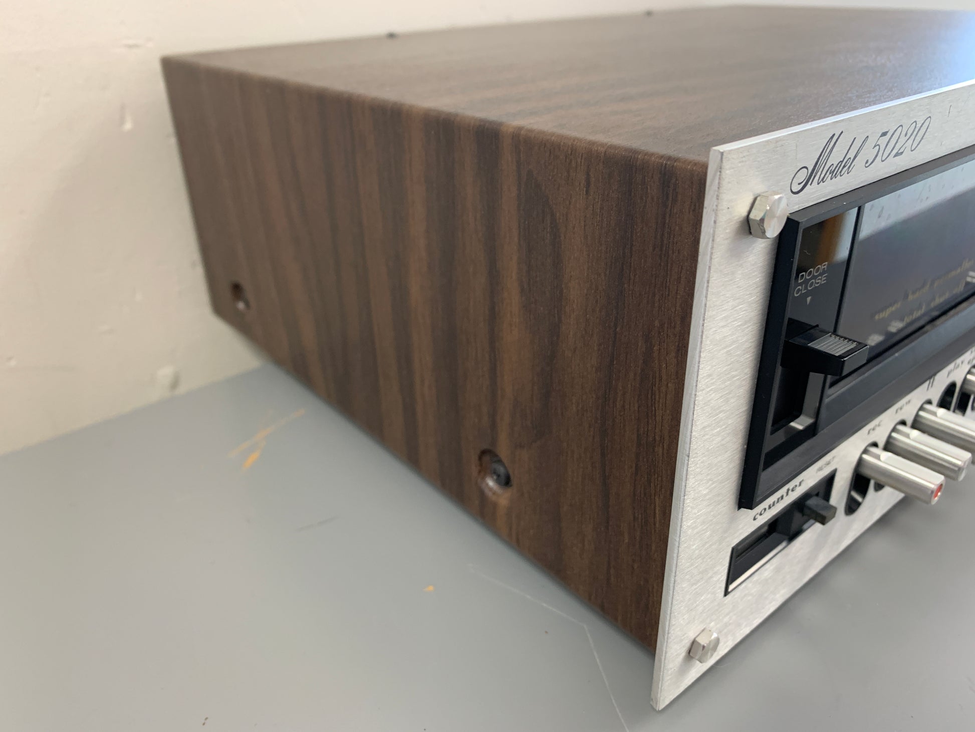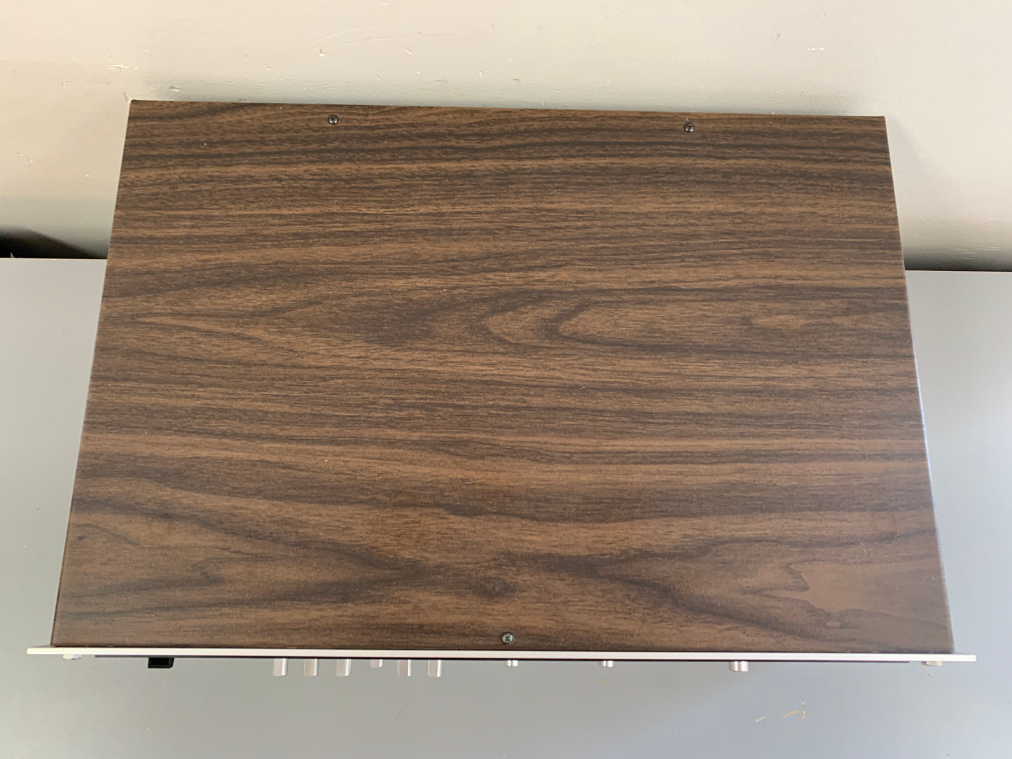 Refinishing the walnut cabinet can transform a unit. We do use real wood oil or Danish oil, not polyurethane. We clean the glass dial carefully; those silkscreened letters are fragile.