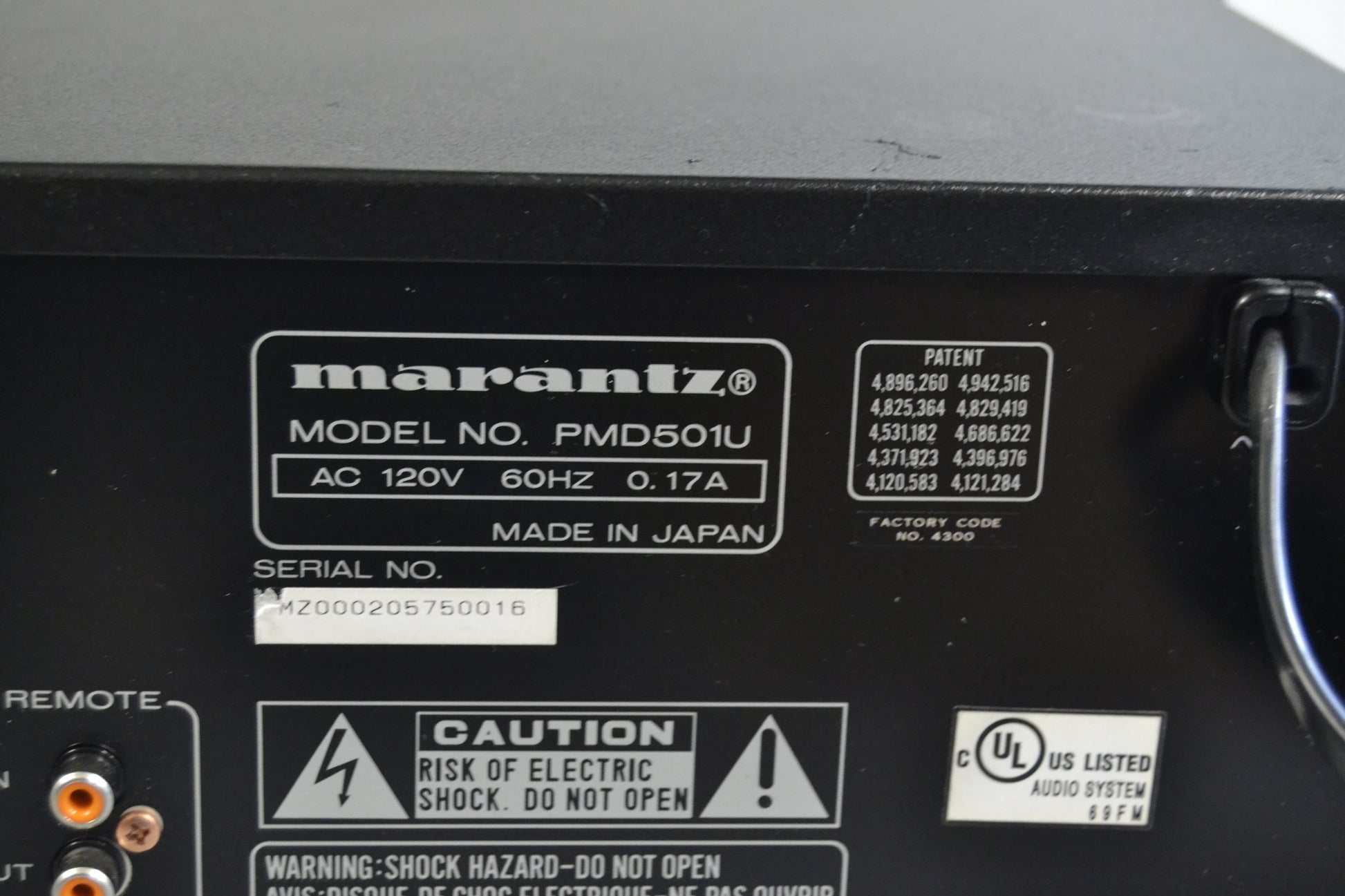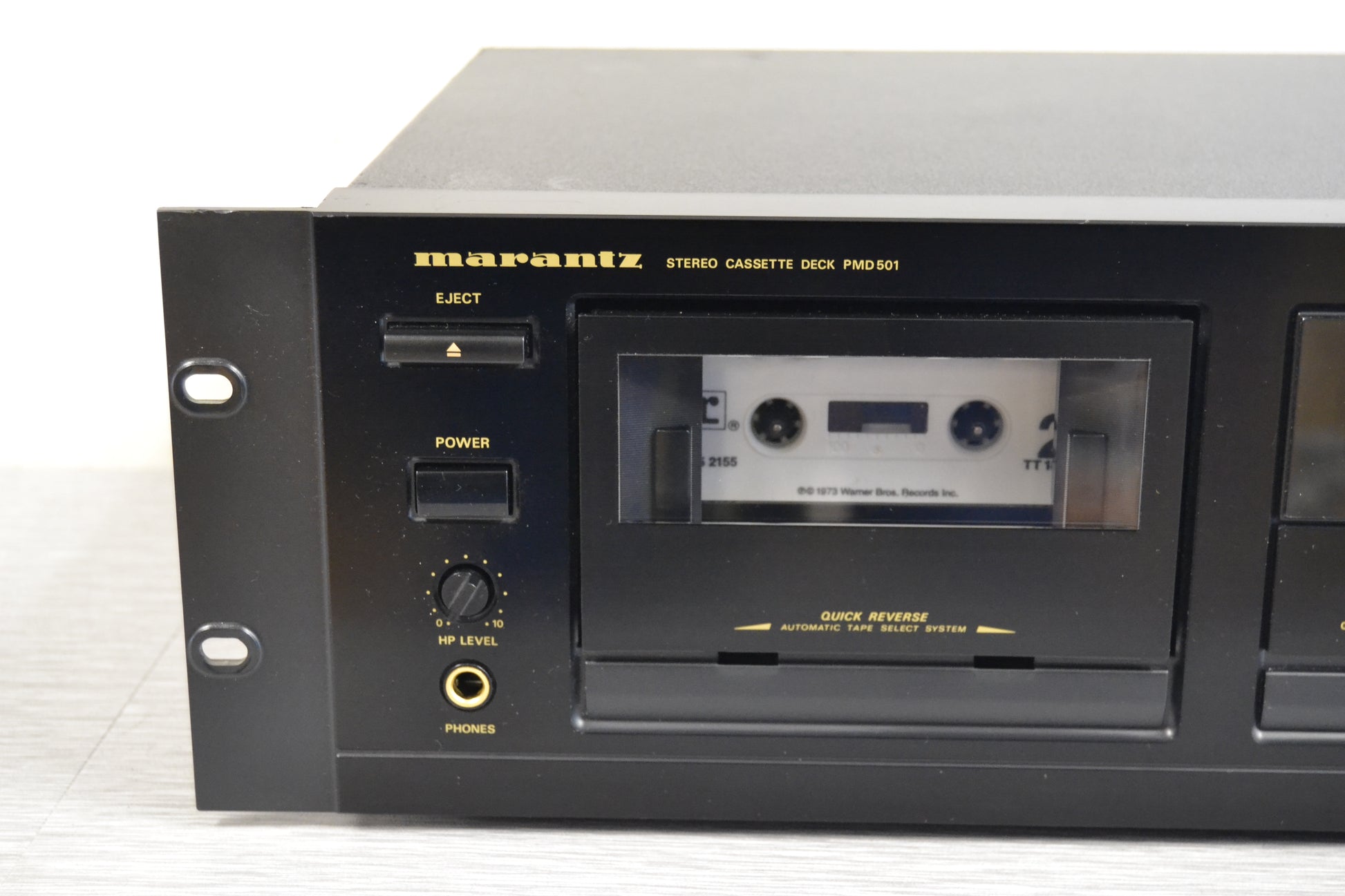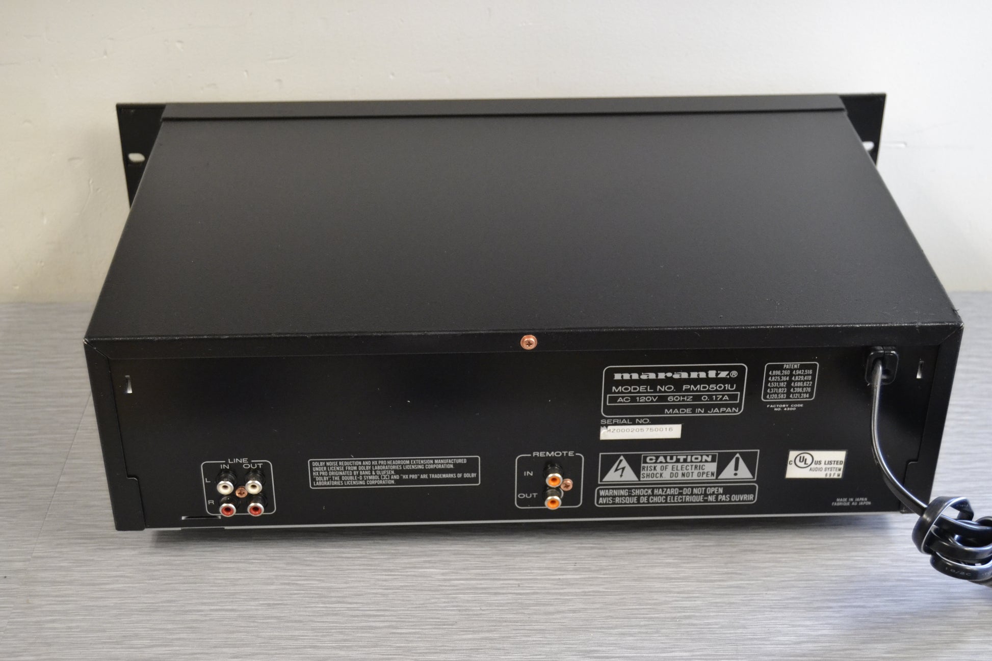 The Marantz Professional PMD501 and PMD502 are professional grade, single-well cassette decks that offer exceptional versatility, reliability, and value. For the professional requiring basic and easy-to-use features, the PMD501 is a perfect solution. For the professional seeking a feature rich and extremely flexible cassette deck, the PMD502 is the ideal answer. Both models offer specialized features such as optically sensing quick autoreverse, which limits audio signal loss when playing or recording. Marantz RC-5 compatibility allows full control via an optional wired (WRC200mkII) or IR (RC5PMDSW) remote control, or through a third-party control system including AMX or Crestron. Large transport control buttons with LED insets facilitate easy operation, and the one-piece 3U rackmount chassis provides extra stability and performance.