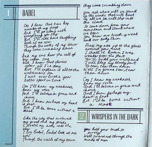 Recorded at Eastcote Studios, British Grove, Angelic, Rak, Last Dollar Studios, Soyuz, Grangeworks, The Odgers' Chapel. Engineering assistants Dan Moyler, George Murphy, Rich Cooper, Tom Fuller & Pete Prokopiw, Garret Miller, Mario Leal, Robbie Nelson Additional instrumentation by Chris Allan (Cello), Nell Catchpole (Violin, Viola), Nick Etwell (Trumpet, Flugelhorn), Ross Holmes (Fiddle), Dave Williamson (Trombone) String arrangements by Mumford & Sons with Ross Holmes and Nell Catchpole Horn arrangements by Mumford & Sons with Nick Etwell and Dave Williamson Managed by Adam Tudhope and Laura Taylor at Everybody's Design & Art Direction by Ross Stirling at Studio Juice Photography by James Marcus Haney Packaged in a standard clear jewel case. Includes a 16 page color booklet of pictures, lyrics, and credits.