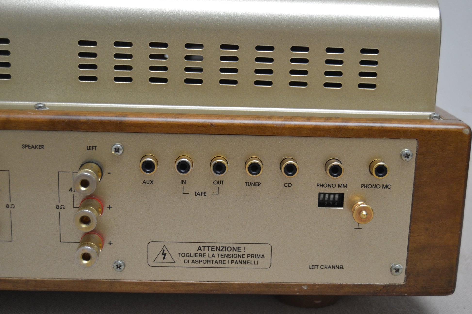 The Armonia is a 20-watt-per-channel integrated amplifier that operates in class A. It has automatic adjustment of bias current to within 0.5% and a standby function that keeps the tube filaments heated when the amp is turned off—features that will be welcomed by most tube amp lovers. It is equipped with four inputs plus an MM and MC phono stage and a tape loop. The tube complement consists of eight EL84s, two E88CCs for the preamp, and two E82CC phase inverters. The build quality and fit and finish are topnotch, and the metal work and walnut chassis make it quite beautiful to behold.