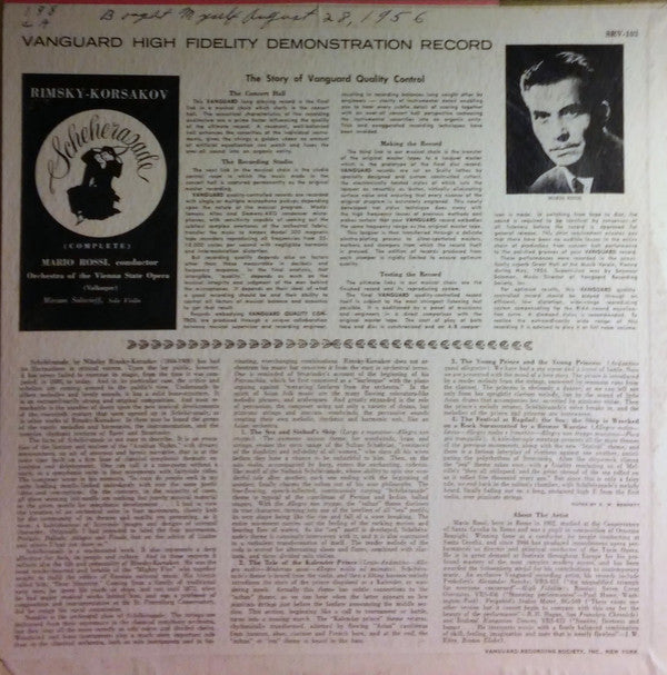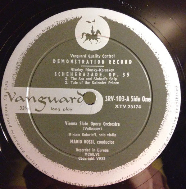 Vanguard Recordings for the Connoisseur Vanguard Quality Control - High Fidelity Demonstration Record Vanguard Quality Control VANGUARD RECORDING SOCIETY, INC., NEW YORK Recorded in Europe MCMLVI Copyright VSRI