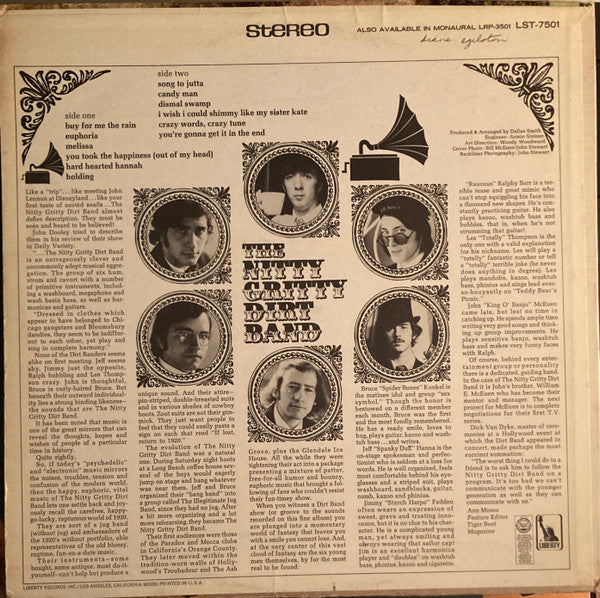 The catalog number is printed as 'LST-7501' on the front & back covers and labels. The catalog number is printed as 'LST 7501' on the spine. 'J.H.' monogram etched in runout matrix for [a423502 = lacquer cut by Issued with Liberty Form #1065-L, standard factory-issued inner sleeve showing covers of 70 hyped LPs