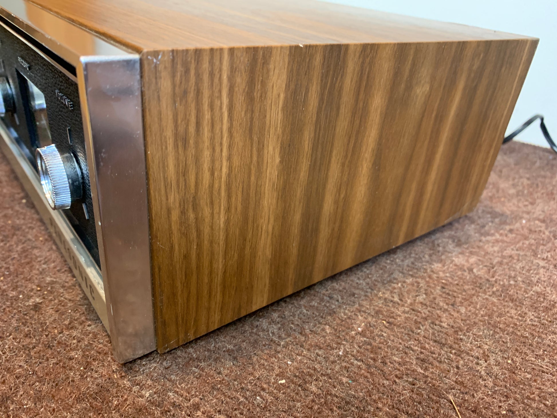 Refinishing the walnut cabinet can transform a unit. We do use real wood oil or Danish oil, not polyurethane. We clean the glass dial carefully; those silkscreened letters are fragile.