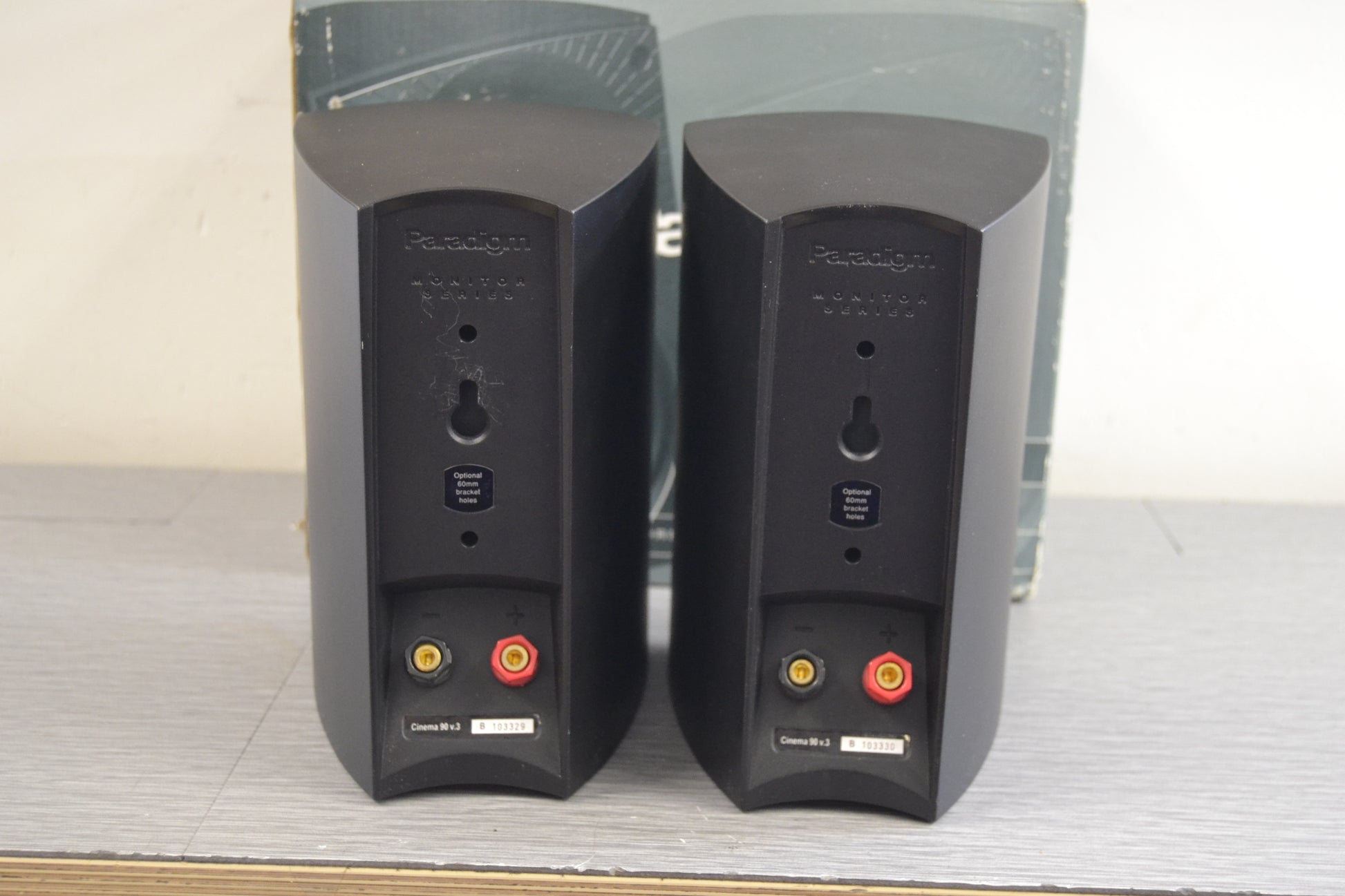 The Paradigm Cinema 90 is a bookshelf speaker designed for home theater, featuring a 2-driver, 2-way acoustic suspension design with a mineral-filled polymer enclosure. It has a third-order electro-acoustic crossover at 2.3 kHz. The high-frequency driver is a 25-mm PTD dome, while the bass/midrange driver is a 115-mm ICP cone.