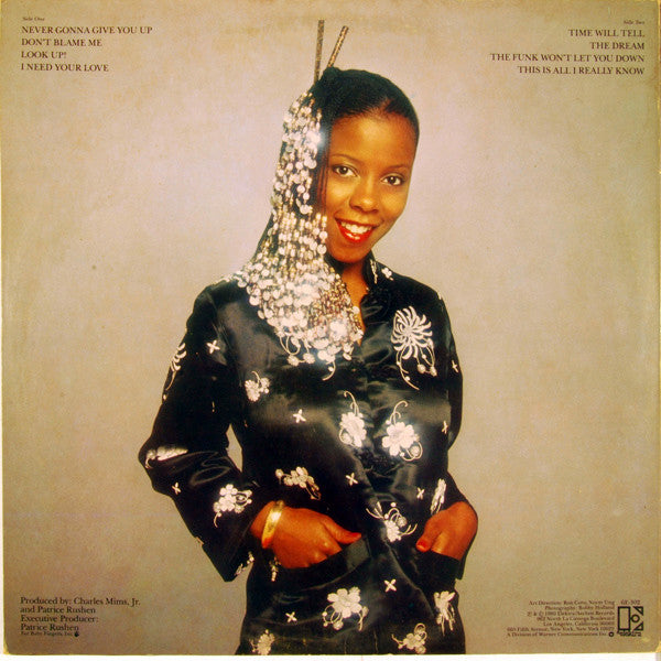 White record labels with "Promotion Copy Not For Sale" on left-hand side of label. Recorded at Conway Recording Additional Recording at The Sound Factory and The Automatt Mastered at Crystal Sound Recording Leon "Ndugu" Chancler - Courtesy of Epic Records Gerry Brown - Courtesy of Columbia Records Charles Veal - Courtesy of Capitol Records Representation - Class Act Enterprises A1 © 1980 Baby Fingers Music (ASCAP)/Freddie Dee Music (BMI) A2 © 1980 Baby Fingers Music/Angelyric Music/ Clarence R. Bell Music (ASCAP) A3 © 1980 Baby Fingers Music/Mims Music/Shownbreree Music (ASCAP) A4 © 1980 Baby Fingers Music/Mims Music/Angellyric Music (ASCAP) B1 © 1980 Baby Fingers Music/Angelyric Music (ASCAP) B2 © 1980 Baby Fingers Music/Shownbreree Music (ASCAP)/Freddie Dee Music (BMI) B3 © 1980 Baby Fingers Music (ASCAP) B4 © 1980 Baby Fingers Music/Love-Ly-N-Divine Music (ASCAP) This album is dedicated to Reggie Andrews Printed in U.S.A. Produced for Baby Fingers, Inc. ℗ & © 1980 Elektra/Asylum Records A divsion of Warner Communications, Inc.
